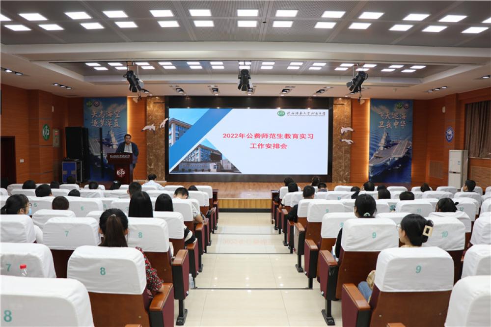 9月22日下午,我校2022年公費師范生教育實習工作安排會在致遠樓報告廳舉行。陜西師范大學實習帶隊老師竇家維,我校副校長高麗文,教務處主任副主任董翼、陳德裕,政教處副主任鮑青青,全體教研組長、指導教師和來自陜西師大、華東師大、華中師大的33名實習生參加了會議。會議由教務處副主任董翼主持。...