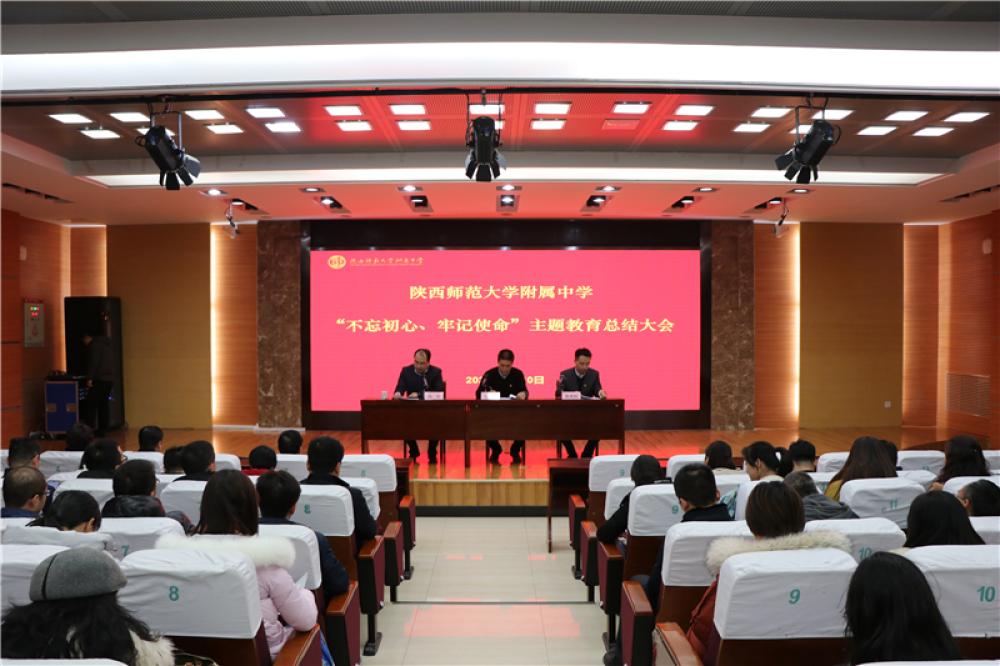1月10日下午,我校在科技樓一層報告廳召開“不忘初心、牢記使命”主題教育總結大會。附中黨委書記陳勇剛,校長、黨委副書記馮軍,附中領導班子成員及全體黨員參會。主題教育校內指導組程永剛同志參加會議。...