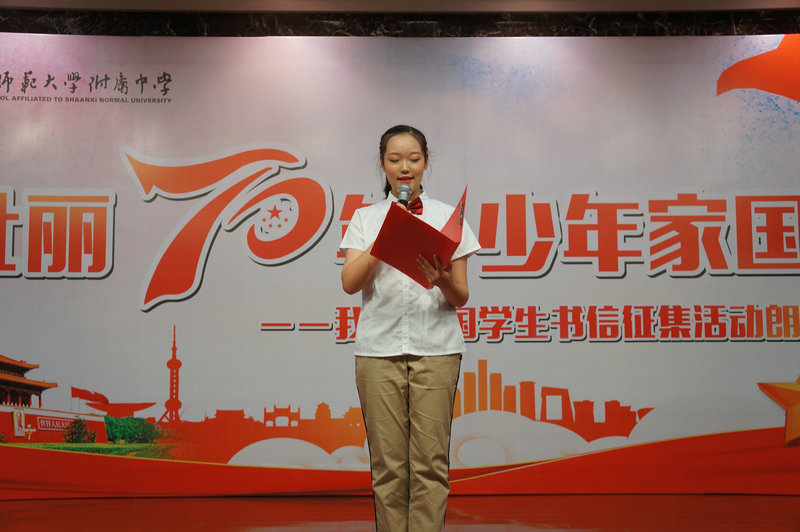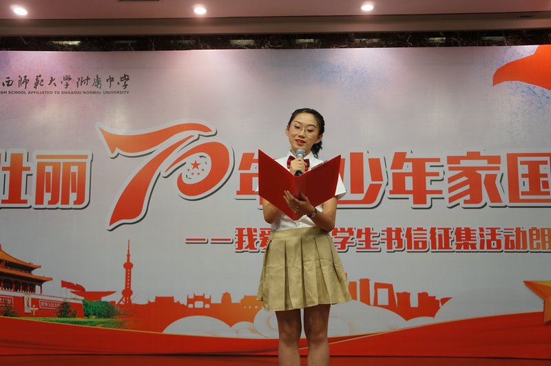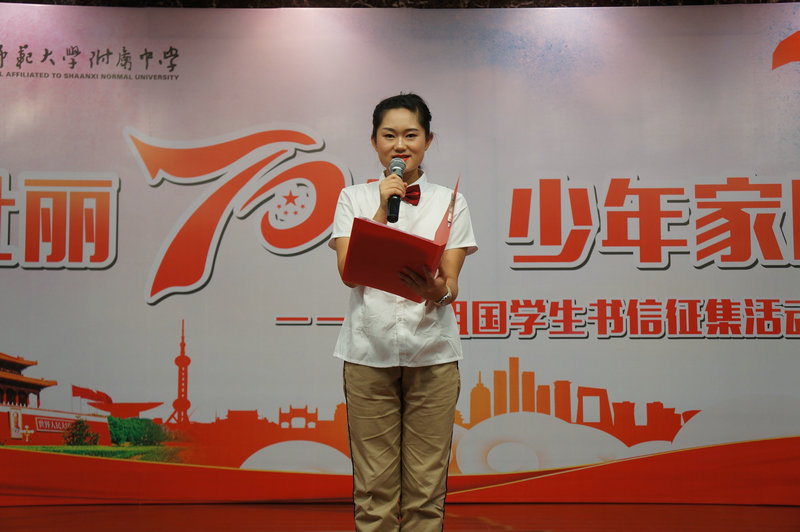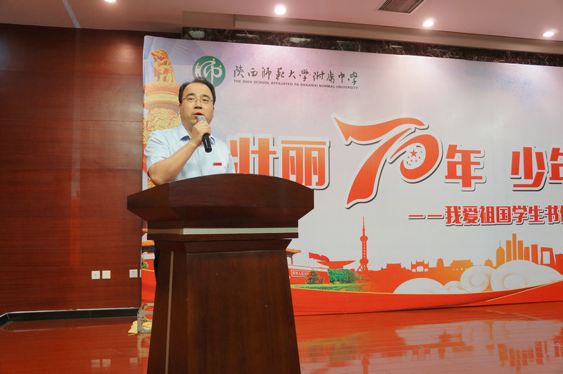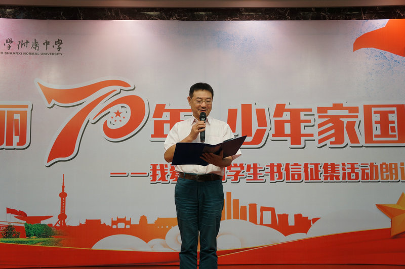 我校馮軍校長致詞。馮校長首先對此次活動的主辦方及承辦方致以真摯的感謝,馮校長講到,愛國是成才之本,立身之基,書信作為傳承中華民族文化的重要交流形式意義非凡,值此中華人民共和國成立70周年之際,我校學子通過書信的形式,積極表達,講好新中國富強故事,講好西安發展故事、講好家庭變化故事,展現出新時代中學生昂揚向上的精神風貌和對祖國的一片赤子之心。希望同學們都能夠珍惜此次活動的機會,從現在開始,努力學習,全面發展,努力成為信念堅定,本領過硬,品格高尚的新時代好青年!