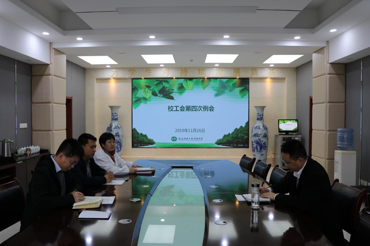 2019年11月26日上午,校工會(huì)召開第四次工作例會(huì),我校黨委書記陳勇剛,工會(huì)委員郭文輝、張纓、李煒參加了會(huì)議。會(huì)議由陳書記主持。陳書記認(rèn)真聽取了三位工會(huì)委員關(guān)于最近工會(huì)相關(guān)活動(dòng)的開展情況匯報(bào),就我校教職工體檢及本學(xué)期后期工會(huì)工作做了詳細(xì)的安排部署。