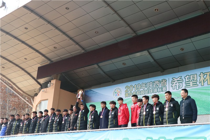 12月20日上午,陜西省“希望杯”2019年青少年校園足球錦標(biāo)賽閉幕式在我校舉行。陜西省教育廳副廳長(zhǎng)趙昶葆,陜西省教育廳體衛(wèi)藝處處長(zhǎng)關(guān)荷,陜西省體育局青少處處長(zhǎng)蘇曉剛,我校校長(zhǎng)馮軍,黨委書記陳勇剛,全體裁判員、運(yùn)動(dòng)員參加了閉幕式。閉幕式由陜西省教育廳體衛(wèi)藝處魯文華老師主持。