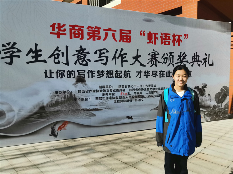 2019年12月27日下午,《華商報(bào)》第六屆“蝦語(yǔ)杯”學(xué)生創(chuàng)意寫(xiě)作大賽頒獎(jiǎng)儀式在西安市航天城第一中學(xué)舉行。我校高2020屆學(xué)生田書(shū)殷在語(yǔ)文組董濤老師的指導(dǎo)榮獲高中組三等獎(jiǎng)。
