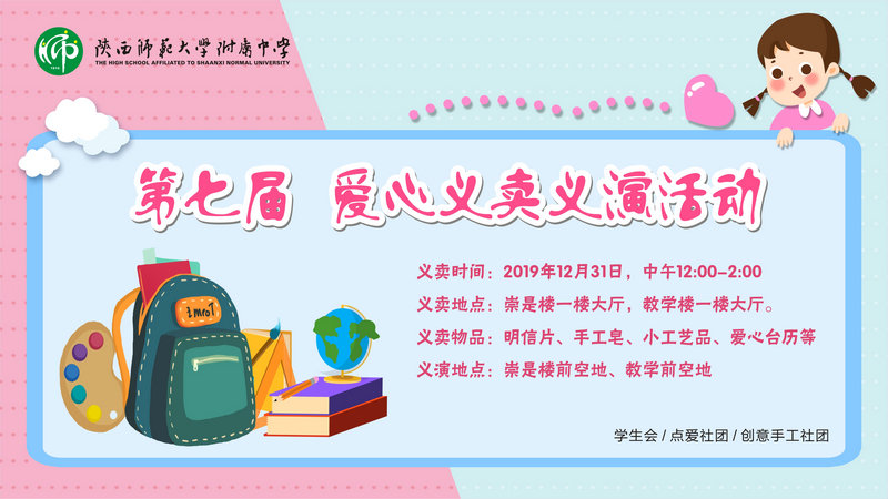 為進(jìn)一步培養(yǎng)我校學(xué)生樂于助人的品質(zhì)、增強(qiáng)大家對殘障兒童的了解與關(guān)注并加入志愿服務(wù)活動,我校學(xué)生會攜點(diǎn)愛社、創(chuàng)意手工社于2019年12月31日在教學(xué)樓與崇是樓一層大廳舉辦了第七屆愛心義賣、義演活動。