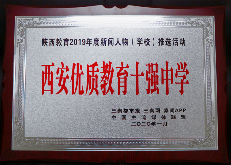 2020年1月9日下午14時,“風云三秦 教育力量”陜西教育2019年度新聞人物頒獎儀式在西安隆重舉行。經過40天層層推薦評比,我校最終脫穎而出,榮獲“西安名校+聯合體先鋒校”、“西安優質教育十強中學”兩項大獎,我校校長馮軍榮獲“2019年陜西教育年度新聞人物—燭光獎”。