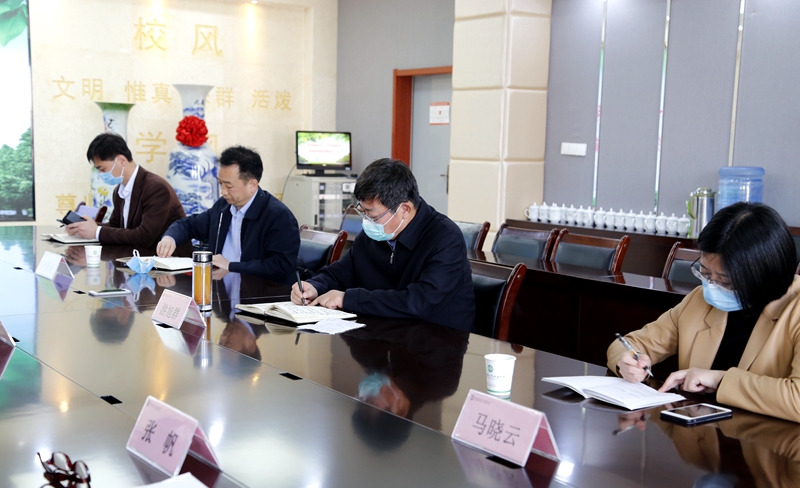 在隨后召開的座談會上,我校校長馮軍就附中疫情防控和開學準備工作進行了匯報。馮校長表示,我校在疫情開始就成立了疫情防控工作指揮小組,在接到市教育局關(guān)于開學工作的安排后,又立即成立了開學前后疫情防控專項工作領(lǐng)導(dǎo)小組,下設(shè)協(xié)調(diào)聯(lián)絡(luò)組、宣傳組、疫情監(jiān)控組、學生教育及應(yīng)急反應(yīng)組、教學管理組、技術(shù)保障組等12個工作小組,統(tǒng)籌兼顧,分類指導(dǎo),統(tǒng)一協(xié)調(diào)落實開學工作。馮校長著重從五個方面詳細介紹了目前的工作。一是開學前人員健康排查及培訓工作,建立全校師生員工的體溫及健康狀況監(jiān)測臺賬,并簽署健康信息真實性承諾書,在確保所有人員健康的前提下按期開學;二是學生開學前培訓及管理工作,利用官微、校園網(wǎng)、網(wǎng)課主題班會、微信群等多種渠道做好學生疫情防護、身心健康等方面的宣傳教育;三是校園環(huán)境治理及物資儲備工作,對校園進行徹底清掃消毒,配備充足的紅外成像測溫儀、口罩、防護服、洗手液、消毒劑等防疫物資;四是完善“兩案九制”,明確制度,責任到人,制定開學期間師生一日規(guī)范;五是建立“錯峰上學”“錯峰放學”“錯時上課”等方案,按照不同學段精準分析學情,科學制定和完善疫情期間教育教學計劃,做到疫情防控和教育教學兩不誤。黨委書記陳勇剛表示,自新冠肺炎疫情發(fā)生以來,附中黨委按照陜西師范大學黨委要求,深入學習貫徹習近平總書記關(guān)于疫情防控工作的重要講話和指示批示精神,堅決貫徹落實黨中央決策部署,當前,附中將按照 “五個一律” “四個不準”原則,眾志成城、堅定信心,全力以赴備戰(zhàn)開學,確保師生順利返校。
