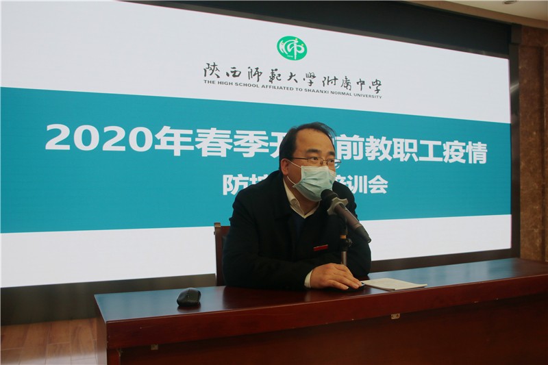 張帆副校長主持培訓會,他鄭重介紹了我校疫情防控和復學前的各項準備工作的相關情況,并對疫情防控和復課后的有關工作重點強調。