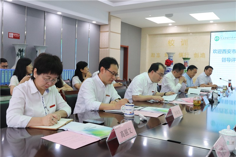 6月16日上午,西安市雁塔區普通高中特色學校創建評估專家組一行5人在組長徐世峰帶領下對我校特色學校創建進行評估檢查。專家組首先在我校崇是樓會議室舉行工作會議,聽取我校特色校園建設情況的匯報,并就評估檢查工作進行安排部署。我校校長馮軍,黨委書記陳勇剛,副校長沙瑞龍、張帆、郭勝、高麗文及全體中層領導和部分教工參加了會議。
