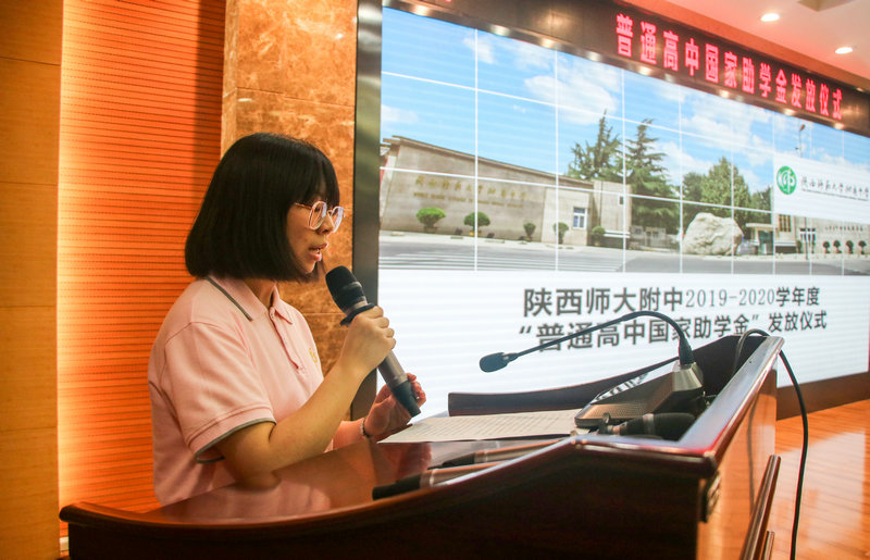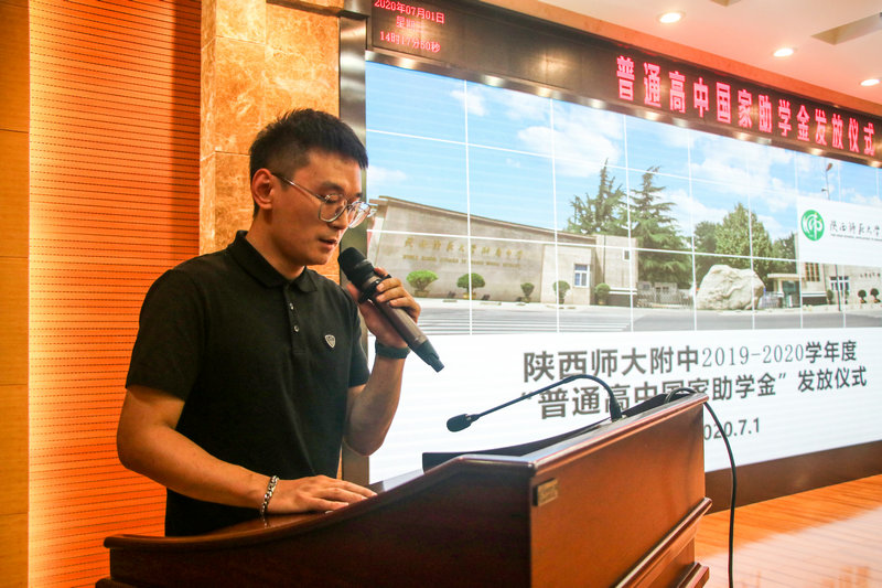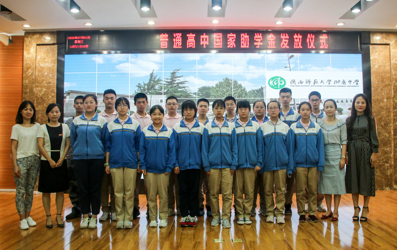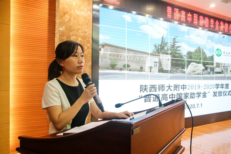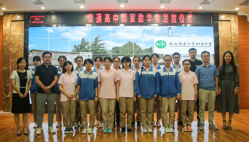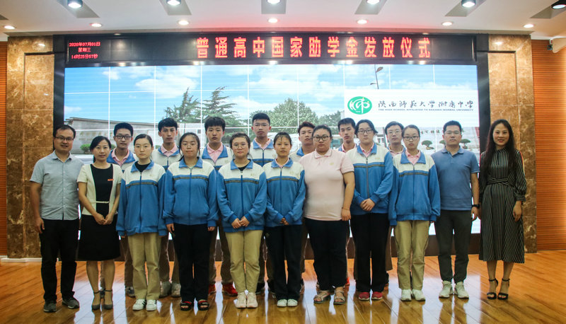 2020年7月1日下午,陜西師大附中2019-2020學年度“普通高中國家助學金”發放儀式在我校致遠樓報告廳舉行。我校政教處副主任鮑青青、高中年級組長陳德裕、師家慶、巨凱,教師代表楊兵、楊維、李瑞杰、郝方圓及全校高中年級受助學生出席了大會,儀式由政教處符潔副主任主持。