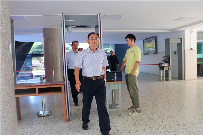 董治寶副校長等領(lǐng)導(dǎo)一邊實(shí)地檢查我校開學(xué)工作準(zhǔn)備情況,一邊聽取我校安全保障措施,開學(xué)疫情防控等細(xì)節(jié)的匯報(bào)。