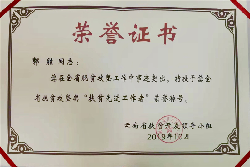 我校副校長郭勝被云南省扶貧開發領導小組授予云南省2019年脫貧攻堅獎“扶貧先進工作者”榮譽稱號。