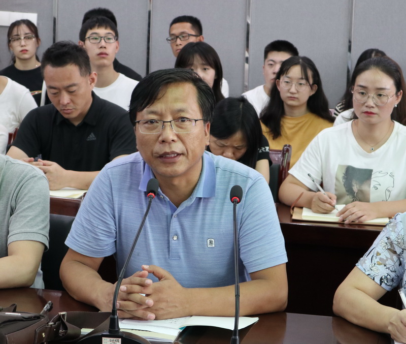 會議開始,高麗文副校長簡要向?qū)嵙?xí)生介紹了附中的基本情況,對實習(xí)生的到來表示歡迎,同時要求實習(xí)的同學(xué)們要珍惜難得的實習(xí)機會,善于學(xué)習(xí)、積極實踐;要求指導(dǎo)教師認(rèn)真負(fù)責(zé),全程幫助指導(dǎo),為同學(xué)們職業(yè)生涯起步保駕護航。帶隊老師賀衛(wèi)東教授介紹了本次實習(xí)學(xué)生的基本情況,并從教學(xué)和安全等方面提出了具體要求。教務(wù)處張元芳主任就接下來近三個月的實習(xí)工作做了具體的安排和要求,希望實習(xí)生能夠深刻認(rèn)識和理解教育實習(xí)的目的和重要意義,盡快適應(yīng)自身角色轉(zhuǎn)換,不斷提升學(xué)科能力和教學(xué)適應(yīng)力。隨后,張主任就每位實習(xí)生和其指導(dǎo)教師分配情況做了詳細(xì)安排。