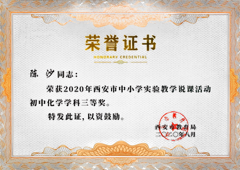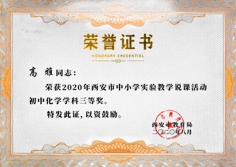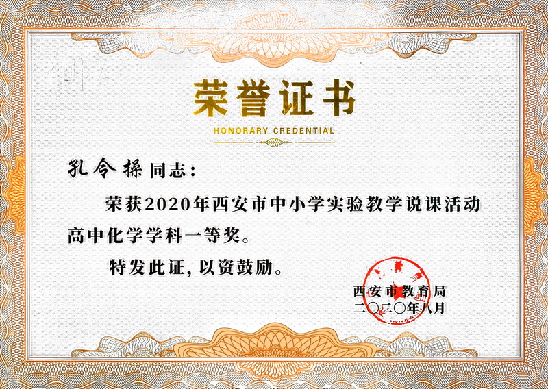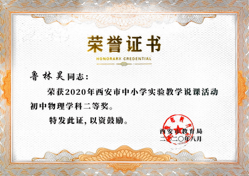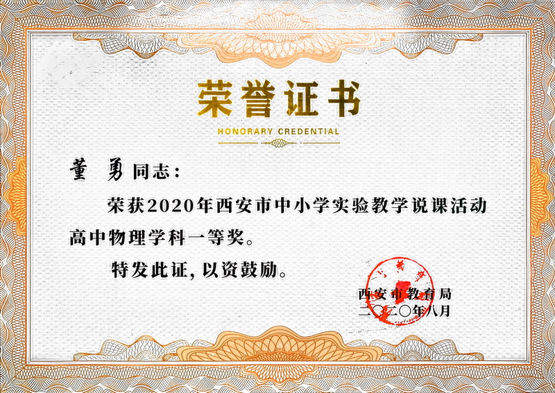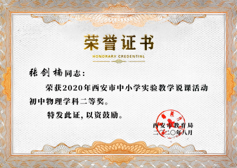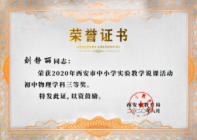我校9位教師在2020年西安市中小學實驗教學說課活動中表現突出,其中董勇、孔令操、劉楊3位老師獲得一等獎;張劍楠、魯林昊、王鵬3位老師獲得二等獎;劉靜麗、高雅、陳沙3位老師獲得三等獎。希望各位教師珍惜榮譽,繼續學習,不斷成長。