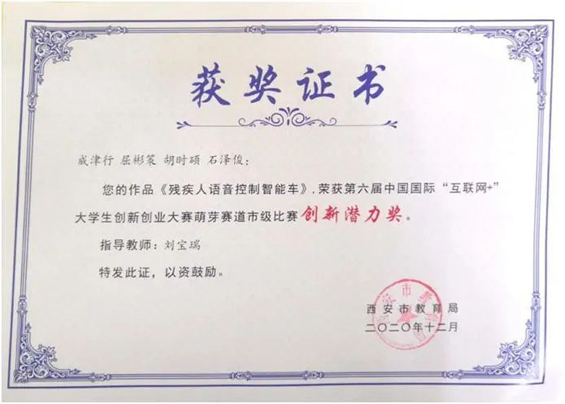 課堂上我們積極擴(kuò)展課程的專(zhuān)業(yè)知識(shí)應(yīng)用場(chǎng)景,在人工智能與生物科學(xué)領(lǐng)域、物理學(xué)科與信息技術(shù)開(kāi)源硬件領(lǐng)域、地理學(xué)科與北斗導(dǎo)航領(lǐng)域、無(wú)人機(jī)與智慧交通等交叉領(lǐng)域進(jìn)行大膽嘗試。同學(xué)們將自己感興趣的內(nèi)容與自身的知識(shí)體系結(jié)合,自發(fā)地開(kāi)展創(chuàng)新研究,自身特長(zhǎng)及內(nèi)在的天賦得到激活。兩年間他們先后獲得了陜西省青少年創(chuàng)新大賽一等獎(jiǎng)、全國(guó)“互聯(lián)網(wǎng)+”創(chuàng)新創(chuàng)意大賽萌芽杯賽道入圍獎(jiǎng)與陜西省創(chuàng)新獎(jiǎng)等一系列榮譽(yù)。教師和學(xué)生形成了亦師亦友的合作探索關(guān)系,而每個(gè)作品則都是學(xué)生智慧的結(jié)晶和快樂(lè)的源泉。