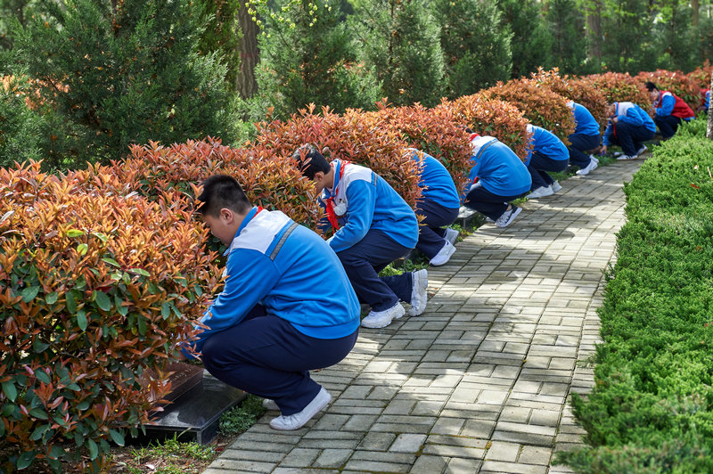 儀式結束后,全體師生瞻仰了紀念碑及烈士墓,并對陵園部分區域進行了清掃。