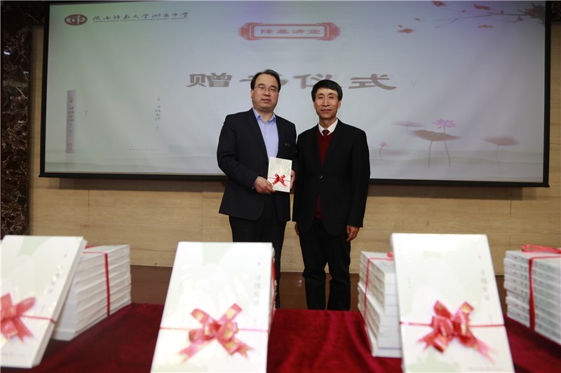 報告會結束后,郭文斌老師向附中教育聯合體贈送了500余冊書籍《尋找安詳》,我校校長馮軍為郭文斌老師頒發了證書。