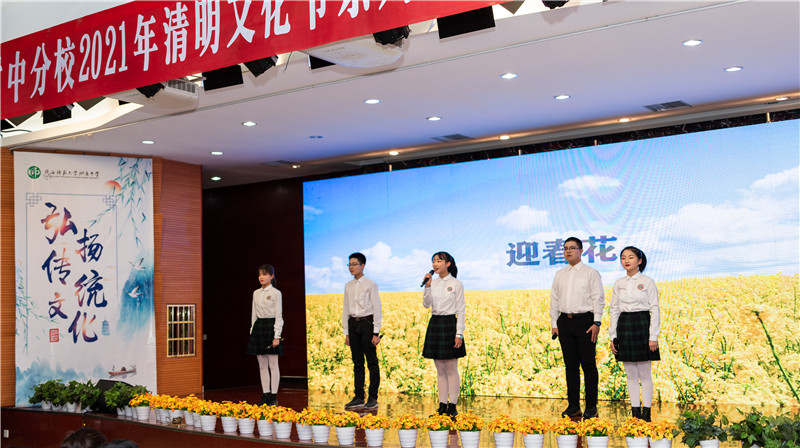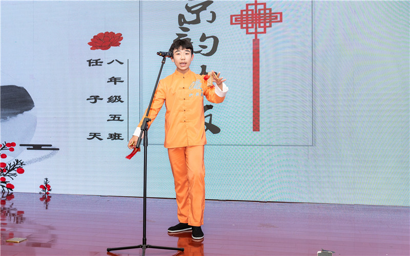 此次清明詩會以中華民族最優雅的方式——吟誦,思念祖輩先賢,歌頌爛漫春光。詩會分為“追思”、“迎春”、“傳承”三個篇章。我校張博陽老師及部分學生代表以一首歌曲《百年》正式拉開了此次活動的序幕。十三個班級的參賽選手們有的慷慨激昂,有的深情舒緩,有的清幽婉轉,用自己的詩歌來緬懷英烈、謳歌春天。精彩的表演贏得了在場觀眾和評委的熱烈掌聲。在第一篇章“追思”中,13班同學帶來的舞蹈《詠荷》以優美輕盈的舞姿、高雅的審美情趣、積極向上的精神風貌,把古典民族舞的美展現得淋漓盡致。初二5班同學帶來詩朗誦《游春》將第二篇章“迎春”推向了高潮,觀眾們跟隨他們的腳步,仿佛看見了白鷺驚擾湖光,劃著桂棹蘭槳,遠山云霧茫茫的景色。在篇章三“傳承”中,三位同學分別帶來了武術、快板、戲曲等精彩節目,將中國傳統文化與現代藝術完美融合,充分展現了我校學子的風采。活動最后,張嵐老師宣布了此次清明詩會、手抄報比賽、攝影大賽、繪畫比賽活動獲獎名單,馬立主任及符潔副主任為獲獎班級和同學頒發了獎狀。