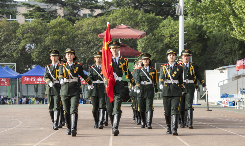 首先進(jìn)行的是莊嚴(yán)的升旗儀式,我校國旗護(hù)衛(wèi)隊(duì)的同學(xué)在雄壯的國歌聲中升起國旗,全場人員肅立。隨后,護(hù)衛(wèi)隊(duì)的同學(xué)升起了校旗和運(yùn)動(dòng)會(huì)會(huì)旗。