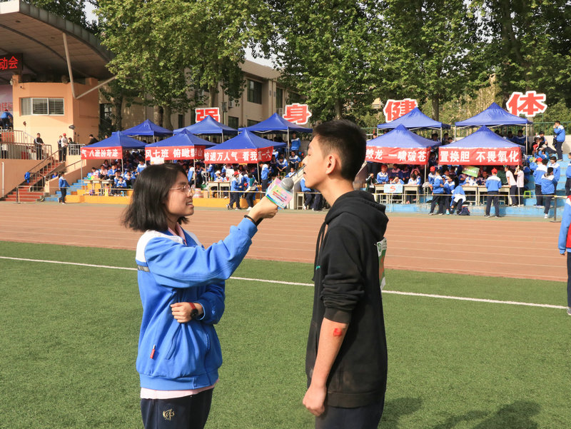 本屆運(yùn)動(dòng)會(huì)會(huì)徽設(shè)計(jì)者高一8班周怡冰同學(xué)在開幕式上生動(dòng)地闡釋了會(huì)徽的設(shè)計(jì)構(gòu)想及其豐富意涵。我校黨委常務(wù)副書記董喜林為周怡冰同學(xué)頒發(fā)榮譽(yù)證書。
