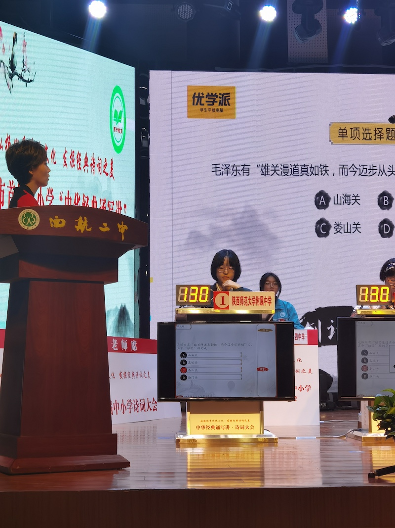 2021年6月3-4日,西安市首屆“中華經典誦寫講”詩詞大會在西航二中隆重舉行。本屆大會以“弘揚優秀傳統文化,發掘經典詩詞之美”為主題,旨在傳播中華優秀文明,體驗傳統詩詞魅力,激發學生在實踐中做中華文化傳播的使者。本屆詩詞大會分為小學組、初中組、高中組和教師組,每一組分別由來自全市33支代表隊組成。