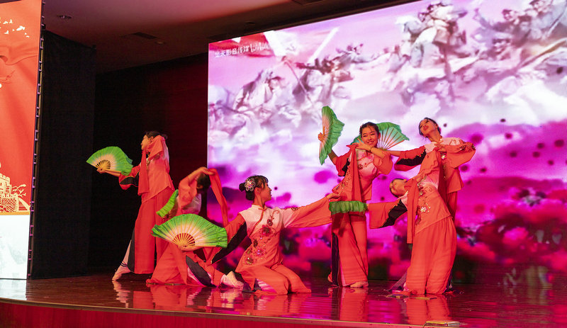 接著,我校校本選修課程及社團成員為大家帶來了一場豐富的視覺盛宴,各個社團精心準備,節目精彩紛呈。合唱社團為大家帶來了合唱歌曲《春日偶成》,優美的旋律將全場每一位觀眾的熱情瞬間點燃;漢服與古代文化社團的成員為大家帶來了舞蹈《花月成雙》,翩翩舞姿引領大家一起感受了古典與現代交融的舞蹈魅力,觀眾們陶醉其中,喝彩聲不斷;文學名著與影視劇賞析社團成員為大家帶來了舞臺劇朗誦《紅巖魂》,該節目追隨歷史的光輝與英雄的榮光,帶領大家感受風云變幻的時代中永不磨滅的國魂;健身社團部分成員為大家帶來了健身綜合訓練展演,他們青春健美,步履矯健,身披一身燦爛,以奮進的姿態,展示著生命的蓬勃與絢爛;播音與主持社團成員為大家帶來的配音節目《傳承先烈遺志共筑強國盛世》帶領大家感受時代的變遷和祖國崢嶸的發展歷程,以及億萬中華兒女的愛國之心。