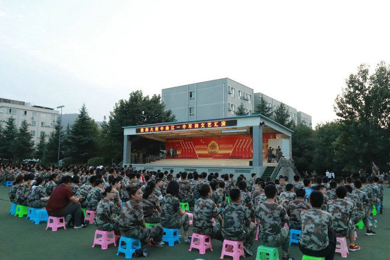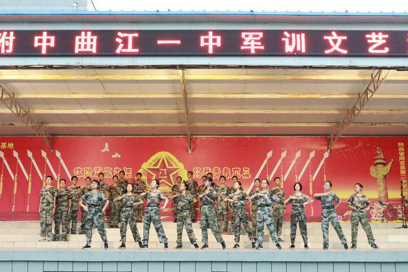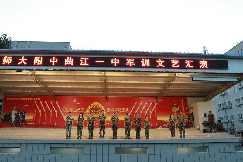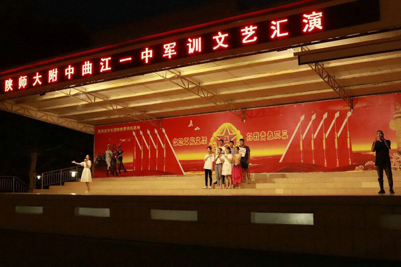 2018年9月6日晚,陜西師大附中、附中分校、附中國際部、曲江一中千余名高一新生在周至國防教育基地進行了軍訓文藝匯報演出。擔任此次演出的評委有陜西師大附中黨委書記、曲江一中常務副校長陳勇剛、陜西師大附中副校長張帆、陜西師大附中國際部校長張蓓、陜西師大附中政教處主任權小紅、曲江一中政教處主任劉瑜、附中國際部政教處主任惠珊珊、附中分校教務處副主任劉建玲以及年級組長。