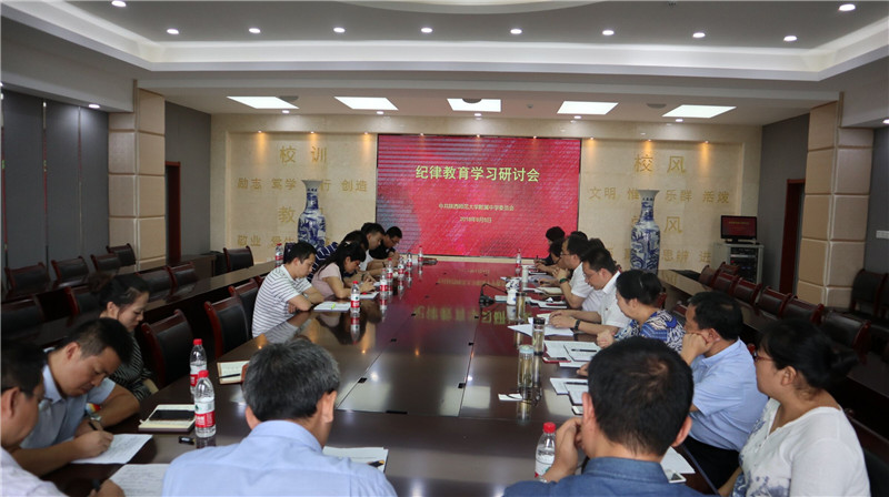 為深入貫徹落實黨的十九大報告“加強紀律教育,強化紀律執行”的要求和中央紀委二次全會精神,根據《中共陜西省委高教工委關于在高校開展紀律教育學習宣傳活動的通知》及中共陜西師大黨委下發的《關于開展紀律教育學習活動宣傳活動的通知》要求,附中黨委于2018年9月6日上午在崇是樓五層會議室召開了由學校中層及以上領導參加的紀律教育學習研討會。會議由附中黨委書記陳勇剛同志主持。