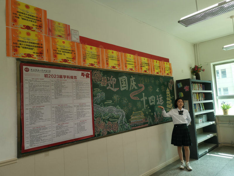 國慶前夕,47個參賽班級緊緊圍繞著“迎國慶”主題精心布置黑板報,在各班班主任的指導下,大家認真查閱相關資料,充分發揮自己的想象力和團結合作的精神,以黑板為主陣地,展示全體師生的愛國情懷。各班設計的黑板報主題貼切、內容充實、構思新穎、畫面美觀、文字優美、色彩和諧,充分展現了我校師生積極向上的精神風貌,營造了濃郁的校園文化氛圍。隨后我校政教處鮑青青副主任、符潔副主任、音美組薛琪、任小紅、黨立敏老師以及部分年級組長和學生會代表擔任此次比賽的評委,各班板報講解員分別從板報的整體觀感、刊頭設計、版面布局、板報內容、創意構思等幾個方面對參賽作品進行了全方位的介紹,師生評委最終評選出各年級獲獎作品。