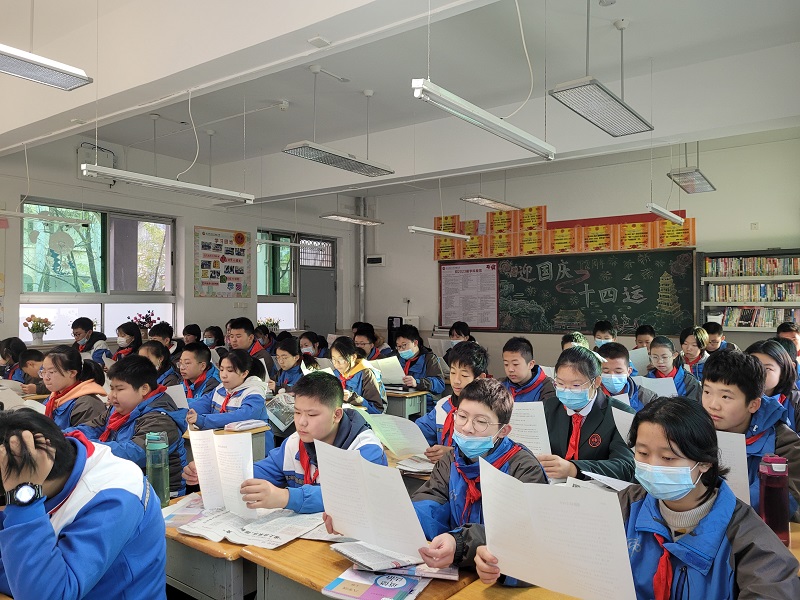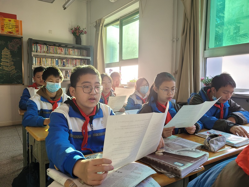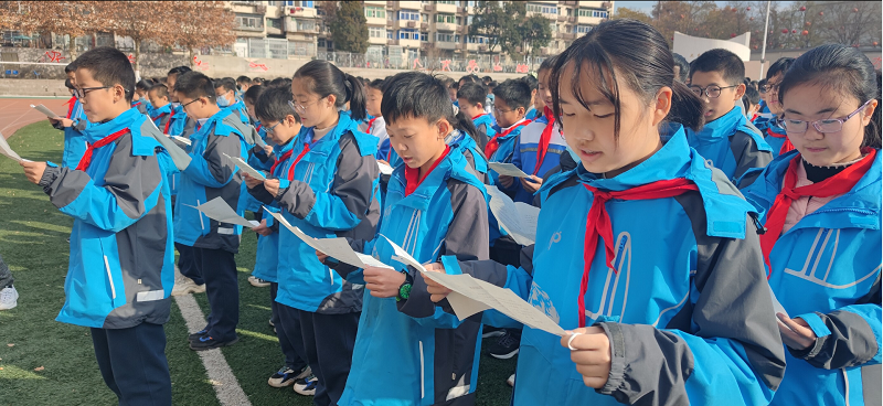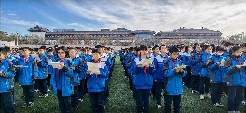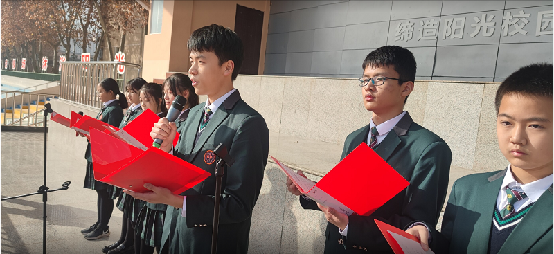 活動的領讀者初二年級吳依晨、馬宋嘉穎、史子鶴、馬煜凱同學,高二年紀趙博宇、陳思彤、趙辰宣、何明煊同學依次上臺,帶領全體同學一起誦讀憲法部分條款,共同學習憲法內容。同學們洪亮的聲音彌漫著整個操場,彰顯出附中學子的學習熱情和對學法、遵法、守法的積極態度。