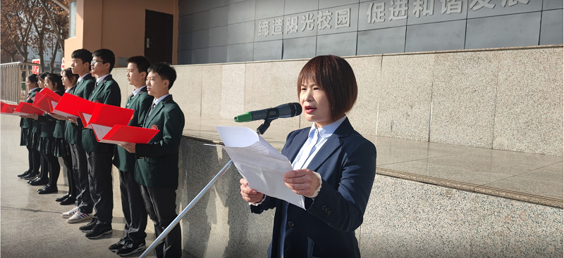 伴隨著莊嚴的國歌,五星紅旗冉冉升起,拉開了活動的序幕。鮑青青副主任介紹了憲法日的由來,并強調憲法日設立的目的不僅在于紀念現行憲法的誕生,更在于在全社會弘揚憲法精神,樹立憲法權威,培養社會公眾崇尚憲法、服從憲法和遵守憲法的意識。今年是國家“八五”普法的首年,學校通過“憲法晨讀”活動加強對青少年學習憲法的宣傳教育。