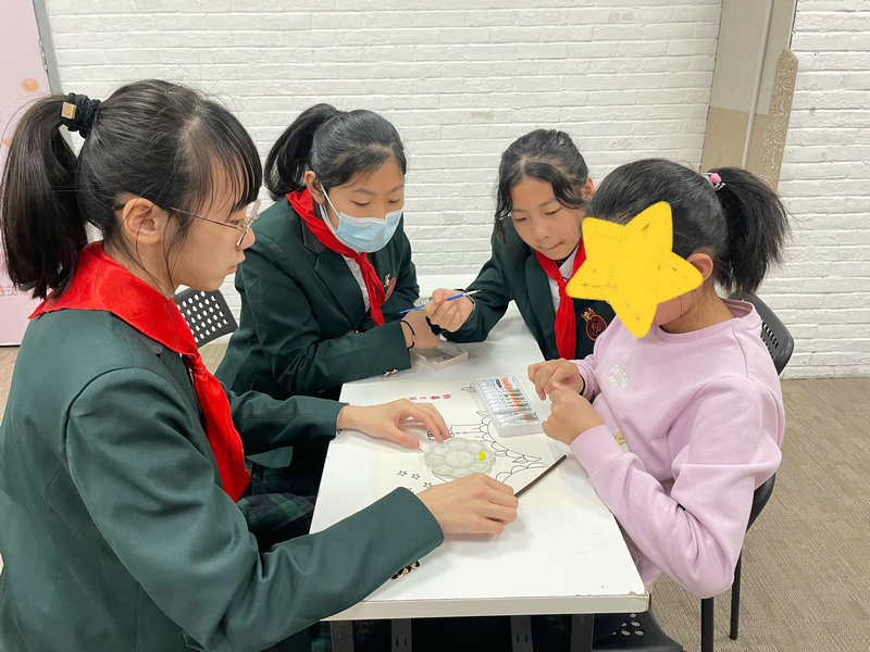 最后,我校志愿者與“拉拉手”的孩子們進行了深入親切的互動,雙方的學生通過多樣化、趣味性的美術、游戲活動,幫助自閉癥兒童建立自信,感受愛的溫度。