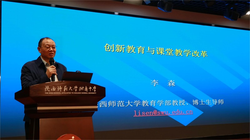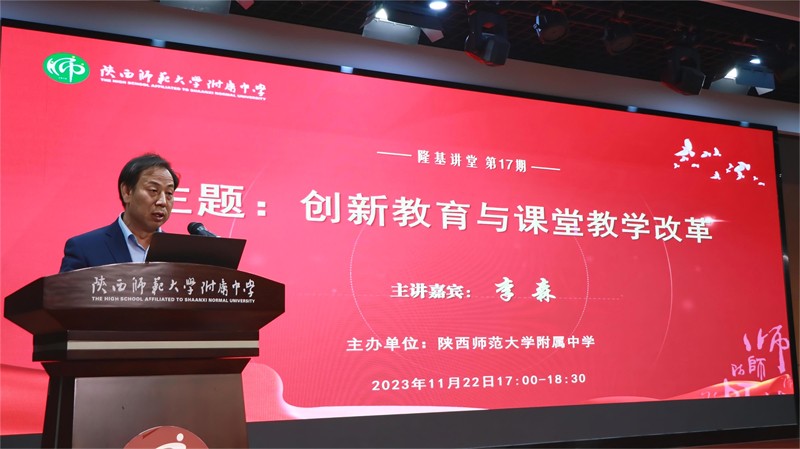 11月22日下午,陜西師大附中名校+共同體在陜西師大附中崇文樓五層報告廳舉辦《隆基講堂》第十七期報告會,附中全體教職工、附中“名校+”共同體部分教師參加了報告會。報告會特邀陜西師范大學(xué)教育學(xué)部教授、博士生導(dǎo)師李森主講《創(chuàng)新教育與課堂教學(xué)改革》的主題報告。報告會由附中黨委常務(wù)副書記董喜林主持。