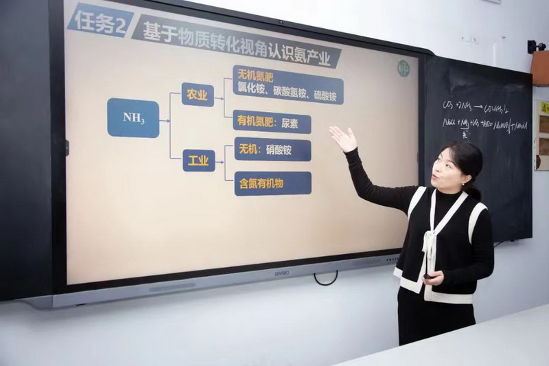2023年12月1日,我校曾文靜老師參加了第九屆全國“審美課堂”教學研討活動,執教的《“氨”得廣廈千萬間——氮及其化合物一輪復習》一課,通過對灰氨、藍氨和綠氨的介紹,以及氨作為未來能源的分析,引導學生運用化學知識分析和解決真實問題情境中的社會問題,通過梯度化的問題串,促進學生深度思考,構建“性質-轉化-合成-結構”四維一體的認知模型,體現了新課標號召的結構化設計,獲得了與會老師的高度好評。