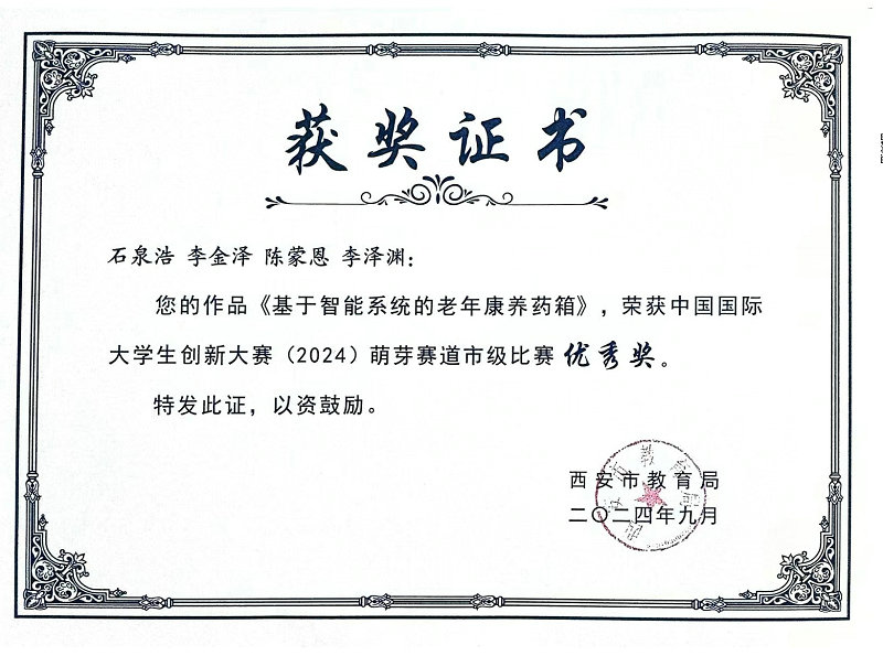 本次大賽中,由我校馬立、郭宏宇老師指導(dǎo),馬子宸、王彬?yàn)枴ⅠR佳怡、陳柯言、沈子琦等五名同學(xué)組成創(chuàng)新團(tuán)隊(duì)開(kāi)發(fā)的《基于EdgeImpluse平臺(tái)與物聯(lián)網(wǎng)技術(shù)的智能鞋》項(xiàng)目榮獲西安市萌芽賽道“創(chuàng)新潛力獎(jiǎng)”。由唐霜、郝方原、劉怡嫻老師指導(dǎo),石泉浩、李金澤、陳蒙恩、李澤淵等四名同學(xué)制作的《基于智能系統(tǒng)的老年康養(yǎng)藥箱》項(xiàng)目獲得“優(yōu)秀獎(jiǎng)”。