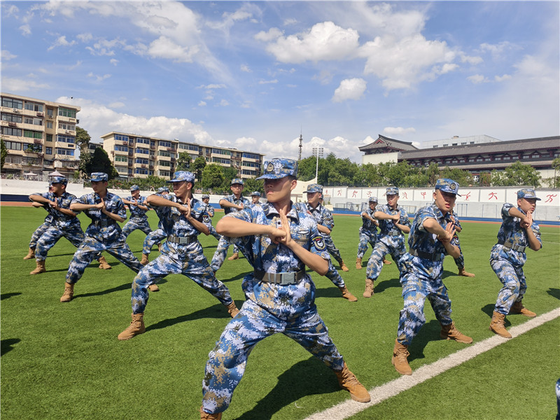 在教官趙坤的嚴(yán)格指導(dǎo)下,學(xué)生們從內(nèi)務(wù)整理的基礎(chǔ)抓起,毛巾折疊、被褥整理都按照軍隊(duì)標(biāo)準(zhǔn)一絲不茍地執(zhí)行。38℃的高溫訓(xùn)練場(chǎng)上,學(xué)生們站軍姿紋絲不動(dòng),任憑汗水浸透戎裝;隊(duì)列訓(xùn)練時(shí)動(dòng)作整齊劃一,口號(hào)聲震撼全場(chǎng)。這種高強(qiáng)度的軍事訓(xùn)練不僅錘煉了學(xué)生們的體魄,更磨礪了他們堅(jiān)韌不拔的意志品質(zhì)。