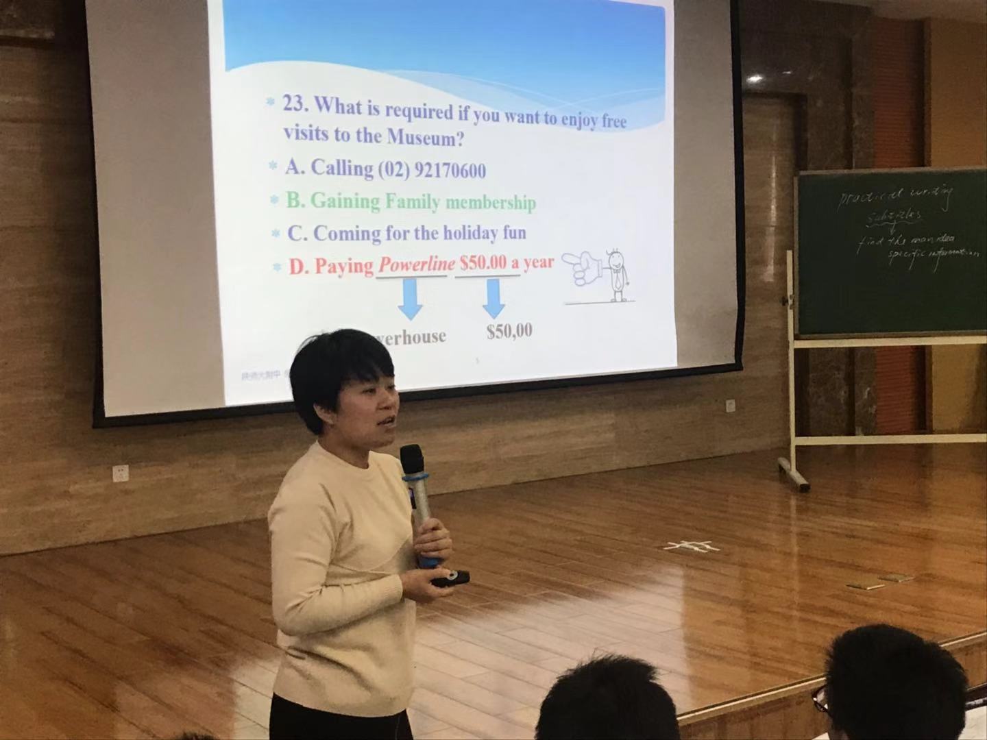 2018年11月13日下午,在科技樓一層進行了由英語組何麗燕主講的高三期中考試試卷講評課活動。在英語組長雷雙娥老師的主持下,全體英語教師參加了此次活動。首先,何老師通過大數據就期中考試閱讀部分進行了精彩細致的講解,其次,組內老師對何老師課進行了分析和評講,隨后,專家高老師對何老師的課進行了點評,對何老師扎實的基本功、課堂組織的嚴密性、教學內容的層層遞進、巧妙設問等給予了高度的評價,同時分享了本校高三的復課經驗,最后,外語組組長雷老師和教務處張主任對本次教研活動給予了高度肯定,希望以后年青教師多多參與此類活動,相互學習相互提高。