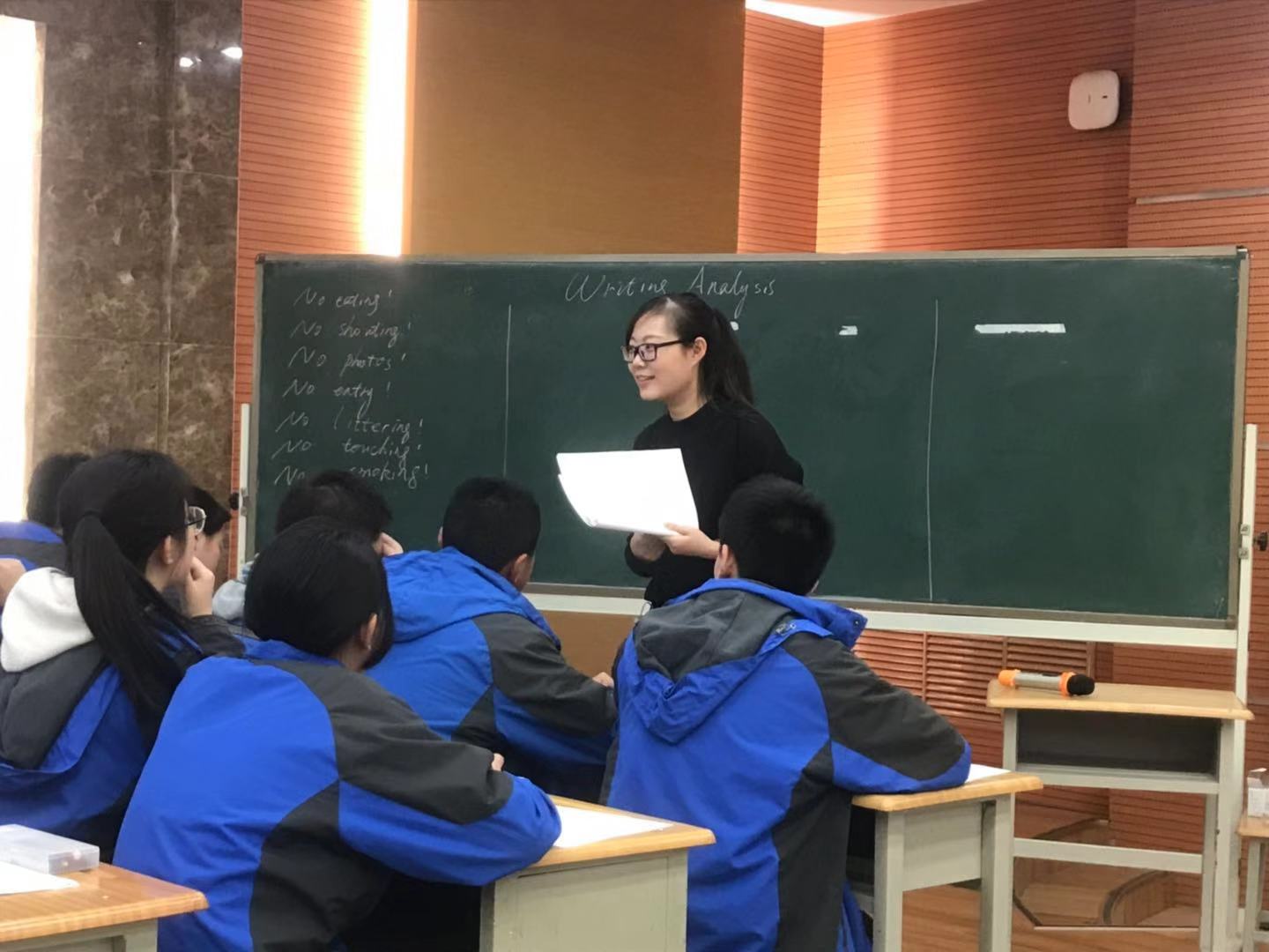 研討會開始,來自分校初三年級的李亞嬌老師帶領分校初三二班的孩子們給大家帶來了一堂有深度有高度的作文講評課。課程一開始李老師以一段聽力音頻帶領孩子們走進了博物館,激發了孩子們對本節課的學習興趣。課上,李老師以九年級第三次考試作文作為基礎,帶領孩子們一起發現自己的問題,并且當堂解決了自己的問題,孩子們最終呈現的作文比考試作文有了明顯的提高,與此同時,孩子們對寫作也有了新的認識。李老師的課堂設計環環相扣,最后以其扎實的專業基本功和穩健的臺風贏得了大家的好評。
