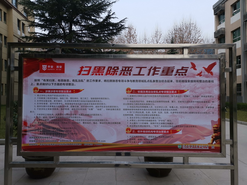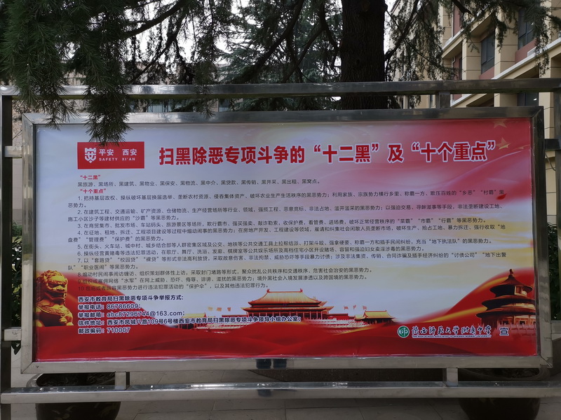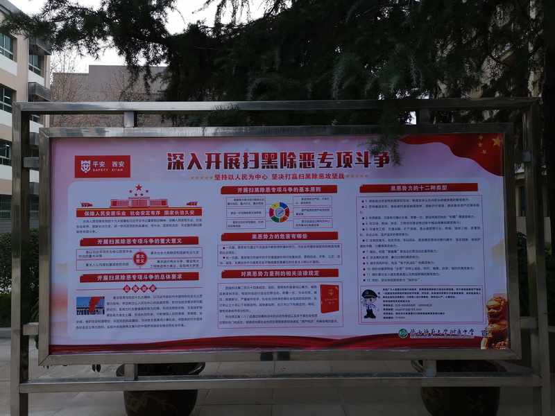 我校將進一步加大宣傳力度,按照“有黑掃黑、有惡除惡、有亂治亂、有傘打傘、有腐反腐”的要求,嚴格落實好掃黑除惡專項整治工作,為廣大學生的健康成長、全面發展提供有力保障。