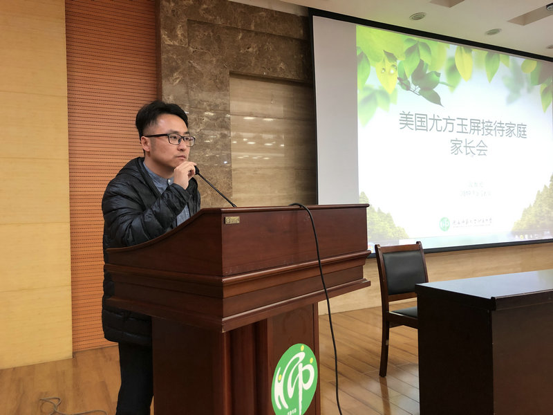 2019年3月6日下午,我校政教處在科技樓一層報告廳召開“美國尤方玉屏學校來訪”接待家庭家長會,會議由政教處權小紅主任主持,交流活動項目負責人王堃老師、我校負責接待家庭的全部家長參加了此次會議。