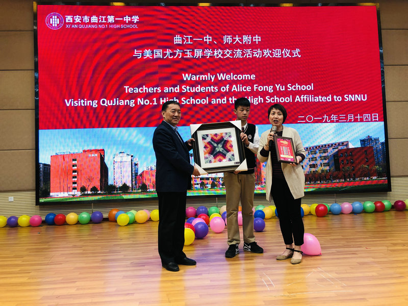 3月14日,陜西師范大學(xué)附屬中學(xué)、曲江一中、美國(guó)尤方玉屏學(xué)校交流活動(dòng)歡迎儀式在曲江一中潤(rùn)德廳隆重舉行。