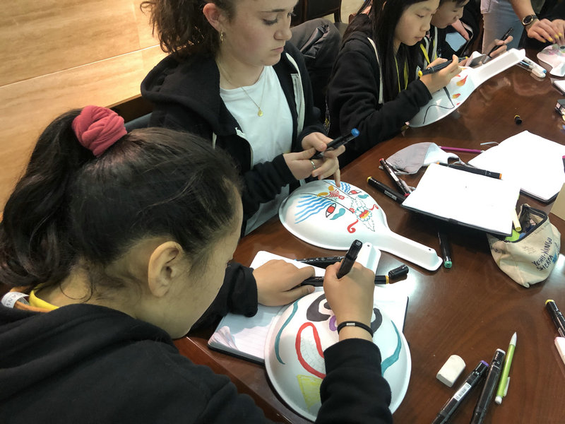3月18日,六十名來(lái)訪學(xué)生分A、B兩組在我校體驗(yàn)了由任小紅老師、薛琪老師、杜培蓓老師分別帶來(lái)的剪紙藝術(shù)、民族音樂(lè)課欣賞、馬勺繪畫這三門特色課程,來(lái)訪的學(xué)生在上課之前對(duì)這幾門課表示出了極大的興趣和熱情,上課時(shí)認(rèn)真聽(tīng)講、積極動(dòng)手制作作品、對(duì)自己感興趣的問(wèn)題也舉手提問(wèn),每節(jié)課結(jié)束后,尤方玉屏的學(xué)生們都積極地把自己制作的作品拿給老師看,并積極地用漢語(yǔ)與代課老師交流他們所學(xué)到的內(nèi)容。