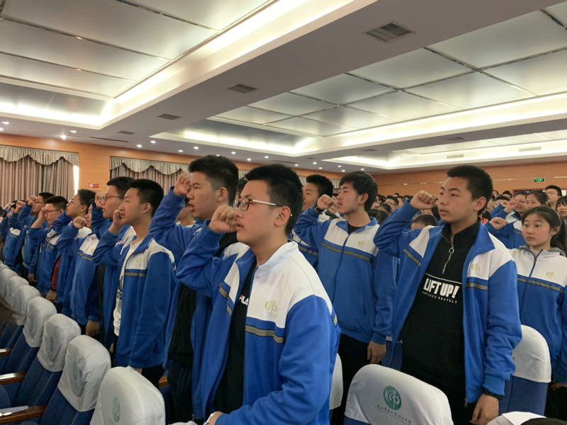 誓師大會尾聲,同學們齊唱《師大附中校歌》聲,在莊重激昂的校歌聲中,此次誓師大會圓滿落幕。