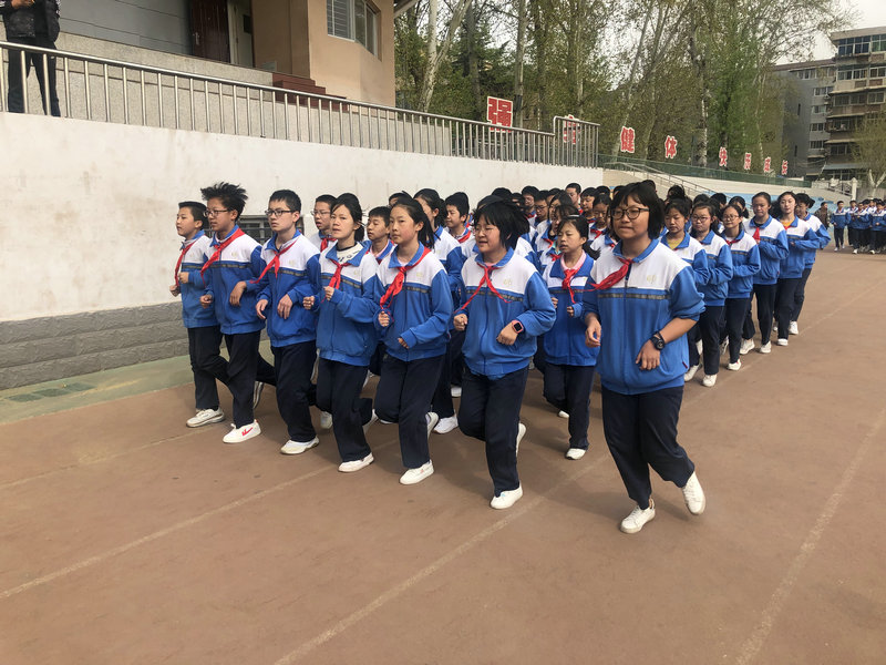 為進一步加強學校陽光體育運動,促進學生身心健康發展,彰顯班級精神風貌,增強班級集體榮譽感及團隊合作意識,2019年3月29日上午,我校政教處聯合體育組在操場舉行了初2020屆、2021屆跑操比賽,擔任此次比賽的評委有政教處權小紅主任、鮑青青副主任,初一、初二年級組長王芳、王娟老師,體育教研組長左俊成老師和徐璐、薛瑞博、傅天星三位體育老師。