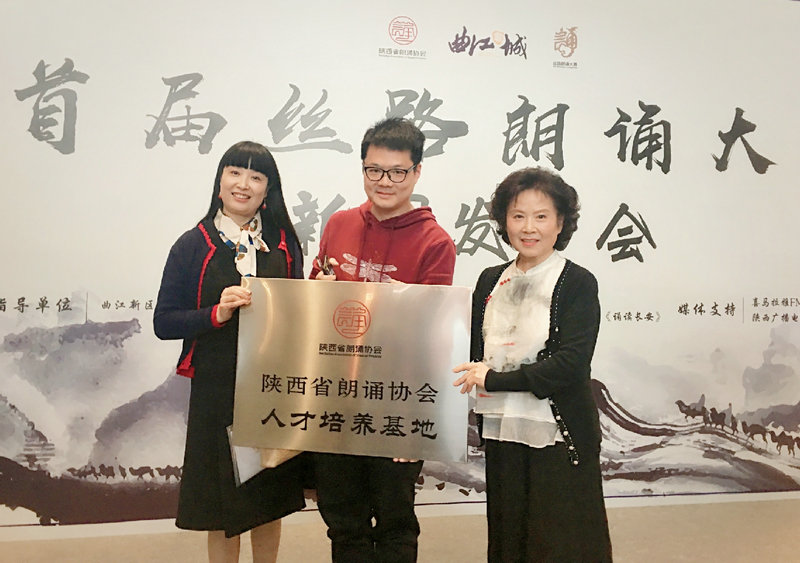 在曲江書城“首屆絲路朗誦大賽”新聞發布會現場,陜西省朗誦協會會長李倩介紹了“首屆絲路朗誦大賽”的實施方案,評委會主席著名表演藝術家許還山、林凱在發言中強調,評委會要本著公平、公正、公開的原則選拔優秀語言藝術人才,推動絲路朗誦文化。
