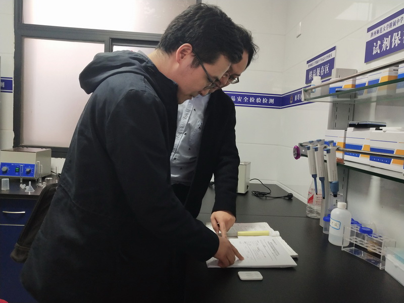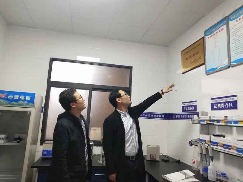 4月3日下午,雁塔區教育局計財科包校干部孟泳吉對我校食品衛生安全工作進行檢查。副校長沙瑞龍,總務處主任陳宏社,辦公室副主任王建軍,總務干事韓銳陪同檢查。