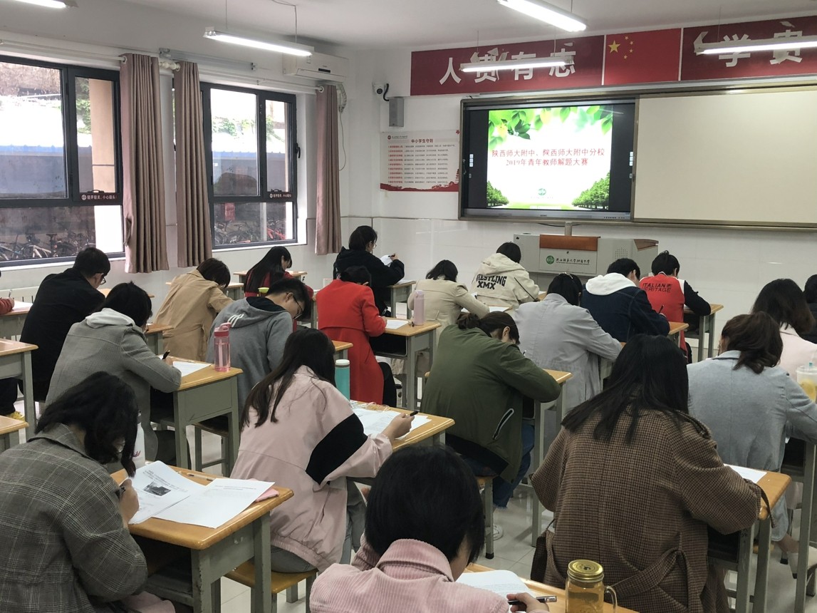為進(jìn)一步提升我校青年教師解題技能,完善和強(qiáng)化青年教師的知識(shí)結(jié)構(gòu)和運(yùn)用能力,促進(jìn)教師專業(yè)成長(zhǎng),4月8日、9日下午,陜西師大附中、陜西師大附中分校2019年青年教師解題大賽如期舉行。教齡10年以內(nèi)及來(lái)我校工作第一輪帶初中或高中的青年教師共計(jì)120余人參加了此次比賽。