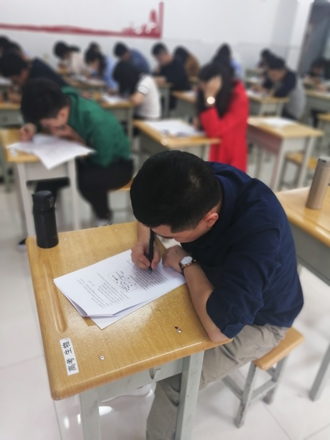 解題大賽上,青年教師們沉著冷靜,仔細(xì)作答。他們時(shí)而凝思,時(shí)而奮筆疾書(shū),均以認(rèn)真飽滿的態(tài)度完成了整個(gè)測(cè)試。高麗文副校長(zhǎng)、教務(wù)處張?jiān)贾魅巍⒔萄惺叶碇魅畏謩e巡視了考場(chǎng)。