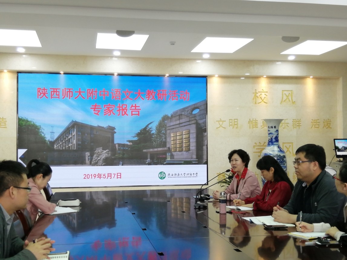 為了提高我校語文教師在課改背景下的寫作教學(xué)教研能力,打造精品課堂,進(jìn)一步提高課堂教學(xué)效率,5月7日下午,我校特邀西安市教科所副所長、特級教師、陜西師范大學(xué)碩士生導(dǎo)師、陜西省省級骨干教師培訓(xùn)專家、人民教育出版社新教材培訓(xùn)專家賈玲老師為語文教研組全體教師做了題為“立足時(shí)代,把握主題,指導(dǎo)寫作,提高成績”的全國卷高考寫作備考策略專題報(bào)告。報(bào)告會(huì)由教研組長萬瓊老師主持。