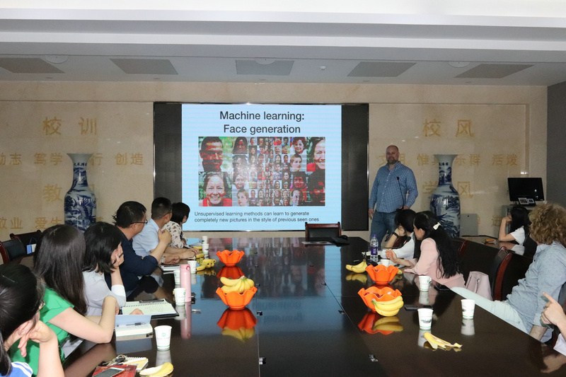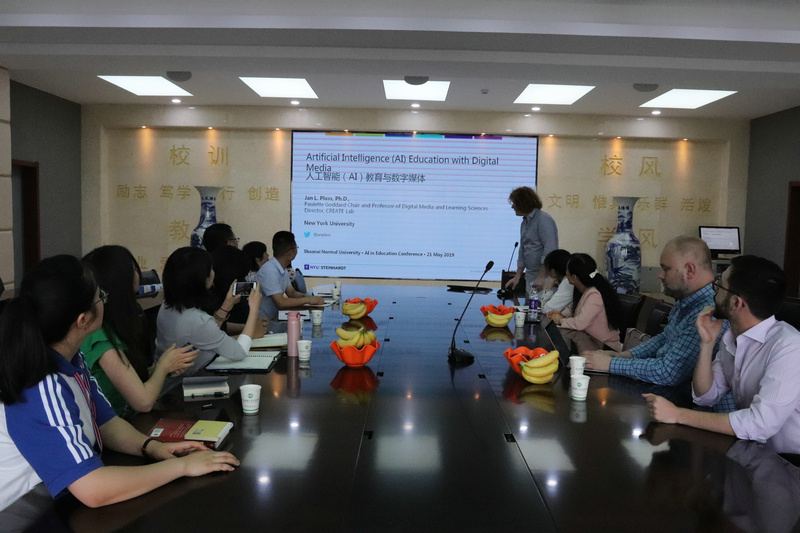 2019年5月20日,紐約大學Steinhardt文化教育及人類發展學院教育傳播與科技專業Jan L. Plass教授以及團隊一行五人,來我校進行人工智能教育的交流。我校網絡中心馬立主任、生物學科教師白茹斌、地理學科教師楊潔、化學學科教師曾文靜、信息技術教師李靖、李云海等參加了此次交流活動。