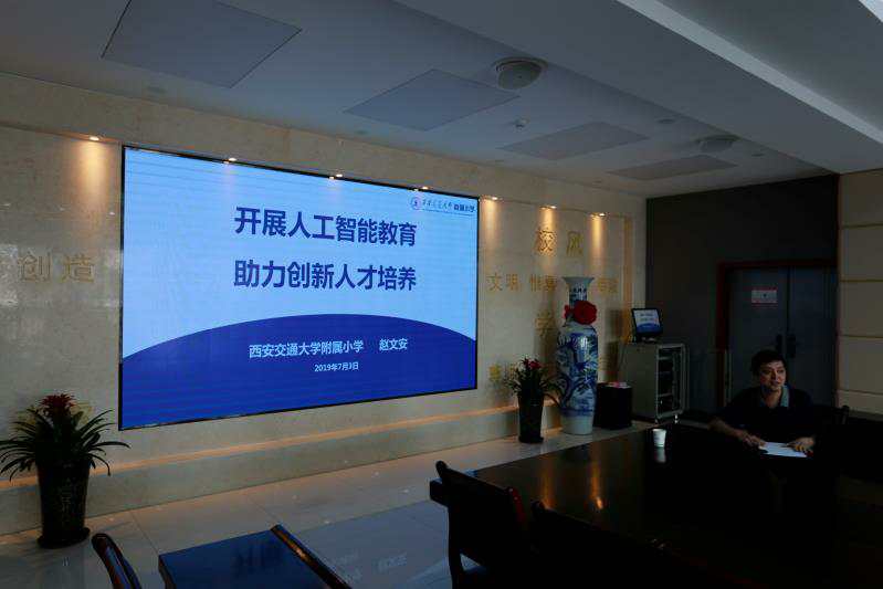 2019年7月3日上午,西安地區(qū)人工智能教育在中小學(xué)的普及發(fā)展座談會在我校召開。參加座談會的專家和老師有:西安市教科所解慧明所長、王建曄老師,光明日報王湘蓉主編、李成玉記者,西安交通大學(xué)附屬小學(xué)教研室趙文安主任、周菲老師,西安市曲江第一小學(xué)教導(dǎo)處楊建章主任,白云老師,我校劉曉晴副校長、網(wǎng)絡(luò)中心馬立主任、郭宏宇、李云海老師等。此次會議旨在落實國務(wù)院及教育部的指導(dǎo)文件,大力推動人工智能進入教育領(lǐng)域,普及中小學(xué)人工智能課程,培養(yǎng)創(chuàng)新型人才。座談會上,西安交大附小、西安曲江一小、陜西師大附中三所學(xué)校就本校開展人工智能教育的現(xiàn)狀及未來發(fā)展規(guī)劃進行了交流研討。解所長、王主編肯定了三所學(xué)校對于人工智能進校園開展的實踐與探索,并就人工智能教育在西安地區(qū)中小學(xué)的發(fā)展做了規(guī)劃與工作布置,整個會議在愉快的氛圍中結(jié)束。
