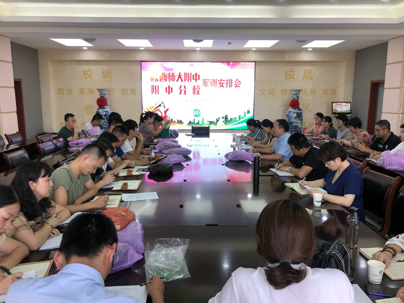 2019年8月19日下午,我校政教處在崇是樓五層大會議室召開陜西師大附中、附中分校高2022屆軍訓準備會,會議由張帆副校長主持,政教處鮑青青副主任、索海峰副主任、符潔副主任、我校及分校兩位年級組長和十三位班主任以及政教處全體干事參加了此次會議。